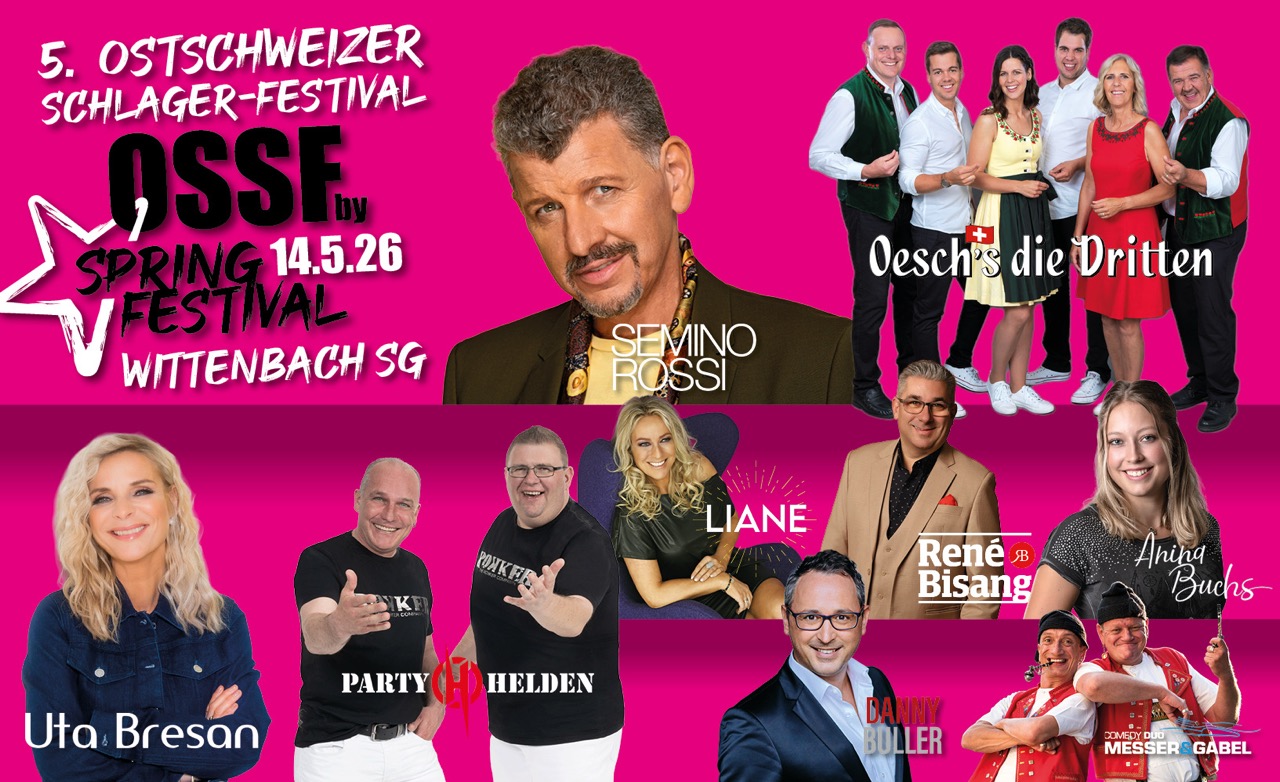Ein Leben ohne Schlager ist zwar möglich, aber sinnlos... 2026 geht es in die 5. Ausgabe mit Semino Rossi, Oesch's die Dritten, Uta Bresan, Partyhelden, Liane, René Bisang, Anina Buchs und Danny Buller. Durch das Programm führt Sie das Comedy-Duo Messer&Gabel.